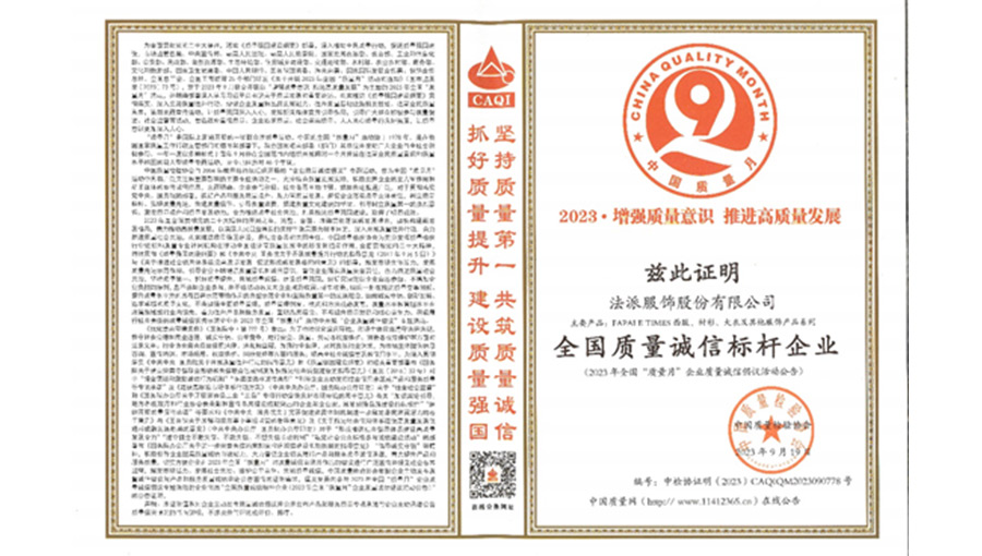 誠(chéng)信經(jīng)營(yíng)是企業(yè)的道德底線,保證質(zhì)量安全是企業(yè)的責(zé)任。法派決心落實(shí)質(zhì)量誠(chéng)信的各項(xiàng)承諾,牢固樹立“誠(chéng)信至上、以質(zhì)取勝”的經(jīng)營(yíng)理念,以誠(chéng)信鑄品牌,以質(zhì)量求發(fā)展。