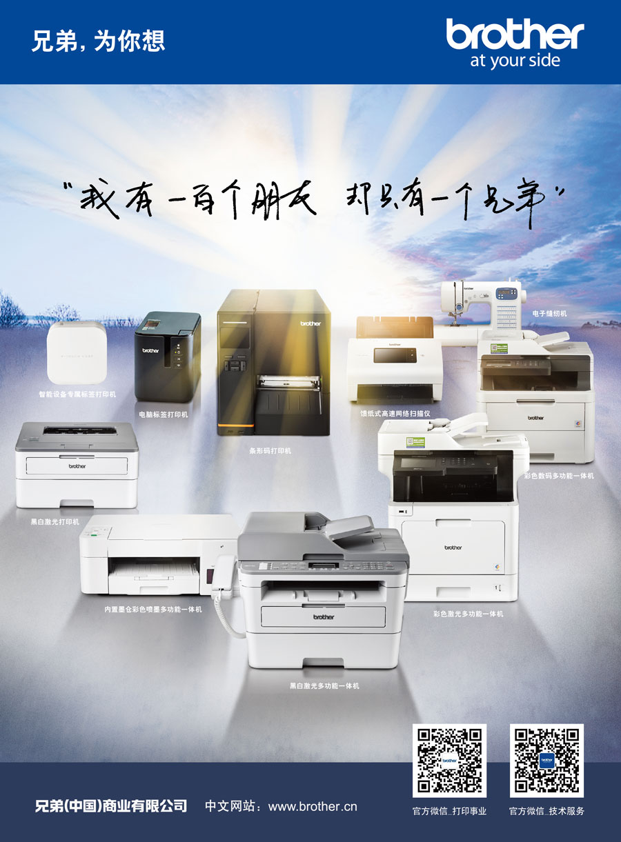 Brother作為擁有110多年歷史的國際化品牌,目前已在全球40個以上的國家和地區(qū)擁有研究開發(fā)基地、生產(chǎn)基地以及銷售公司。作為Brother集團在中國的產(chǎn)品銷售與服務的外商獨資企業(yè),兄弟(中國)充分利用集團的資源優(yōu)勢,秉承“At your side.”的企業(yè)文化理念,遵循顧客第一的宗旨,傾聽顧客的呼聲,為中國消費者提供更多具有高附加值的產(chǎn)品和服務。兄弟(中國)的事業(yè)領域包括以打印機、多功能一體機、傳真機、標簽打印機、掃描儀等產(chǎn)品為代表的打印及解決方案事業(yè);以家用縫紉機、商用繡花機、電腦花樣裁切機為中心的家用機器事業(yè)。