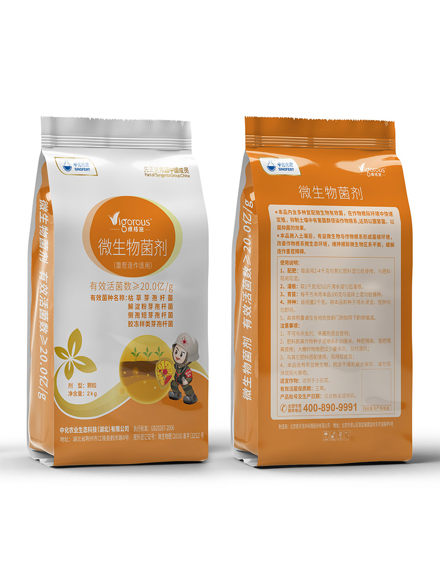 維格施農用微生物菌劑,內含有豐富的抗重茬生防型微生物,與作物根系形成“菌-根”環(huán)境,改善作物根系微生態(tài)環(huán)境,抑制土壤中有害菌群侵染作物根系。生物激活技術增強根系活力和生根能力,促進根系生長發(fā)育。