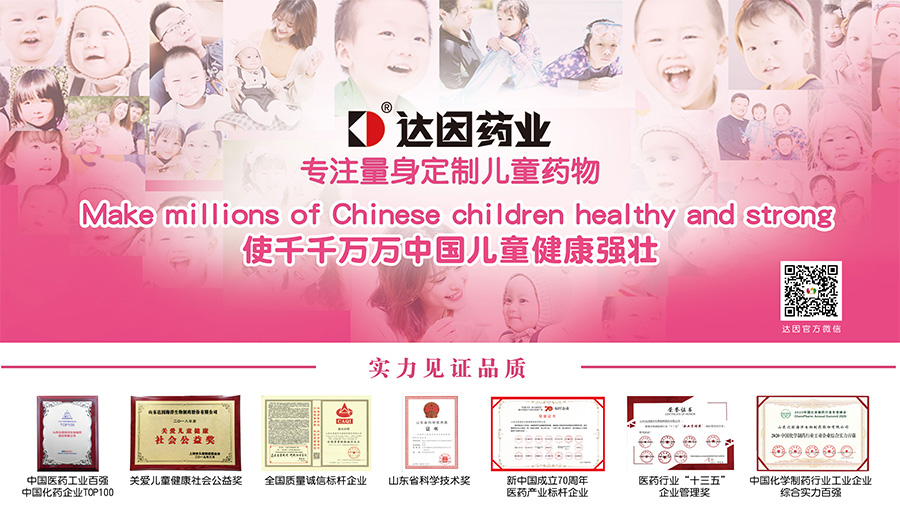 山東達(dá)因海洋生物制藥股份有限公司(簡(jiǎn)稱達(dá)因藥業(yè)),是中國(guó)醫(yī)藥企業(yè)管理協(xié)會(huì)兒童用藥專業(yè)委員會(huì)主任委員單位,以“使千千萬萬中國(guó)兒童健康強(qiáng)壯”為使命,專注于兒童健康領(lǐng)域產(chǎn)品研發(fā)、生產(chǎn)和市場(chǎng)營(yíng)銷,以專業(yè)和責(zé)任捍衛(wèi)兒童用藥安全,在兒科專業(yè)用藥領(lǐng)域取得了良好的口碑和覆蓋率,樹立了中國(guó)兒童用藥的旗幟地位。達(dá)因藥業(yè)產(chǎn)品線涉及兒童藥品、兒童保健食品和兒童營(yíng)養(yǎng)食品、兒童健康用品等領(lǐng)域,形成了以“兒童保健和治療”領(lǐng)域?yàn)楹诵牡膬和】诞a(chǎn)業(yè)布局。