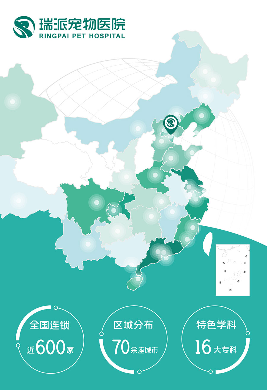 瑞派寵物醫(yī)院與浙江大學、中國農(nóng)業(yè)大學等全國100多所院校進行產(chǎn)學研合作;與碩騰、勃林格、皇家、瑞普生物等國內(nèi)外產(chǎn)業(yè)領(lǐng)軍企業(yè)建立戰(zhàn)略合作;擁有國內(nèi)頂級專家領(lǐng)銜的專家團隊。瑞派秉持“以客戶為中心,堅持以奮斗者為本”的核心價值觀,堅持發(fā)展好每一位員工!發(fā)展好每一家醫(yī)院!堅持服務好每一只寵物和每一位寵主!