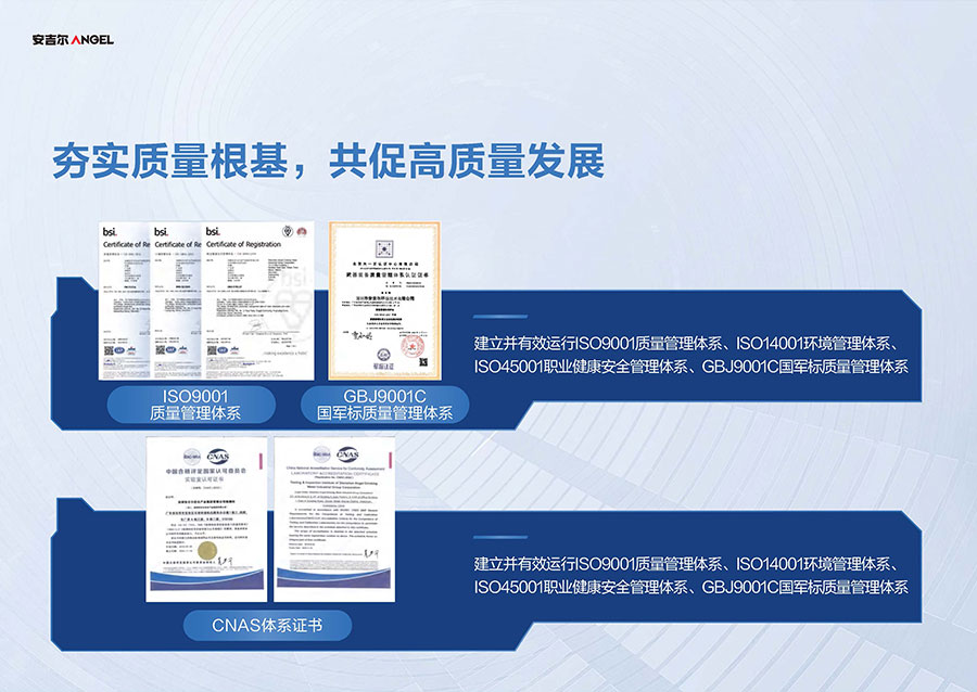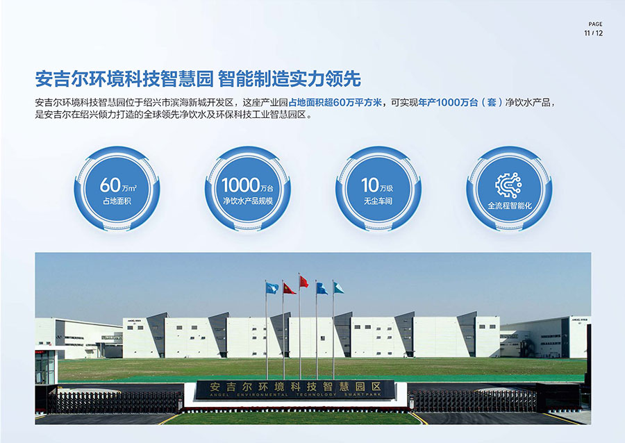 安吉爾布局三大生產(chǎn)基地,其中安吉爾環(huán)境科技智慧園占地面積逾60萬平方米,具備年產(chǎn)1000萬臺(套)凈飲水產(chǎn)品的制造能力。生產(chǎn)體系已獲得中國CQC、美國UL、加拿大CSA等全球八項權(quán)威認證機構(gòu)認可。