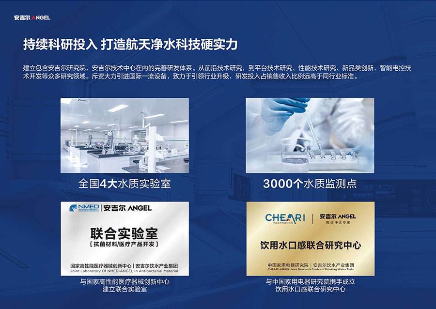 38年間,安吉爾堅持科技創(chuàng)新并主導(dǎo)行業(yè)技術(shù)升級,參與制定17項國家及行業(yè)標(biāo)準(zhǔn),獲得900余項技術(shù)專利,建成4大水質(zhì)實驗室。2023年,該企業(yè)憑借創(chuàng)新實力包攬全球9項發(fā)明大獎,包括3項日內(nèi)瓦國際發(fā)明展獎項與6項亞洲創(chuàng)新發(fā)明展獎項。