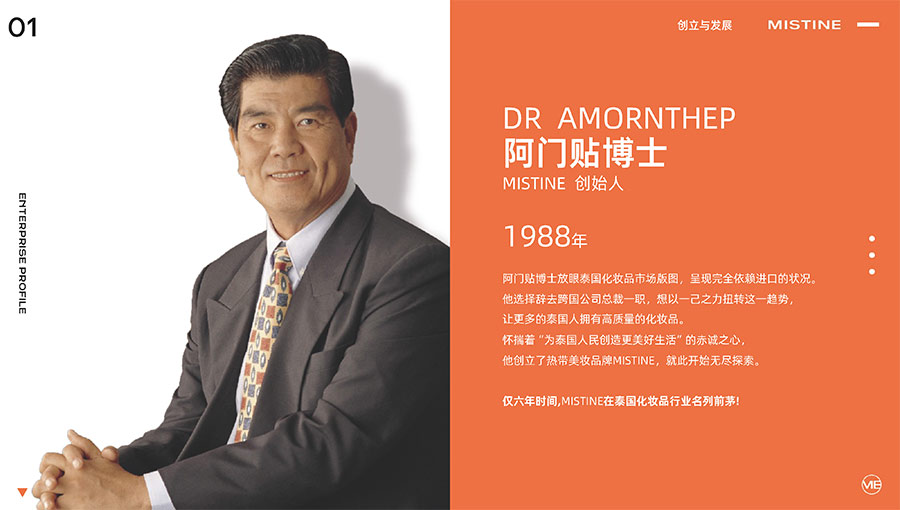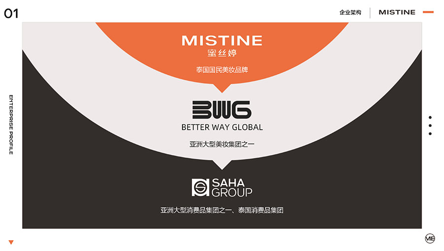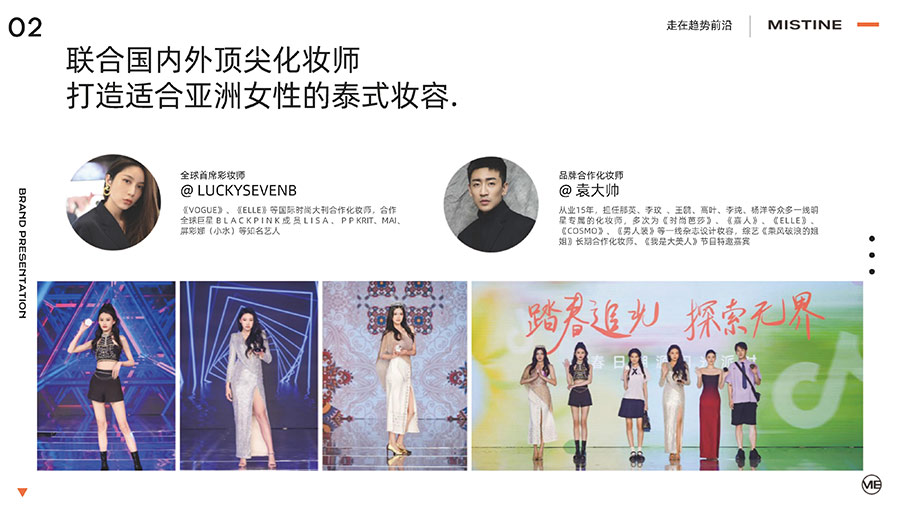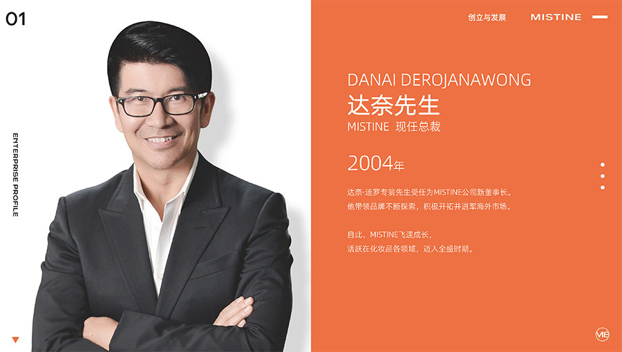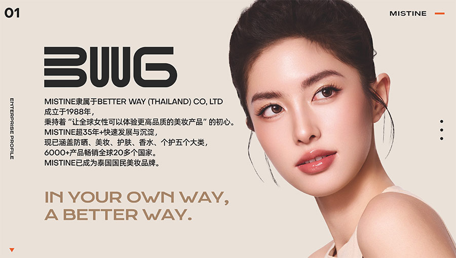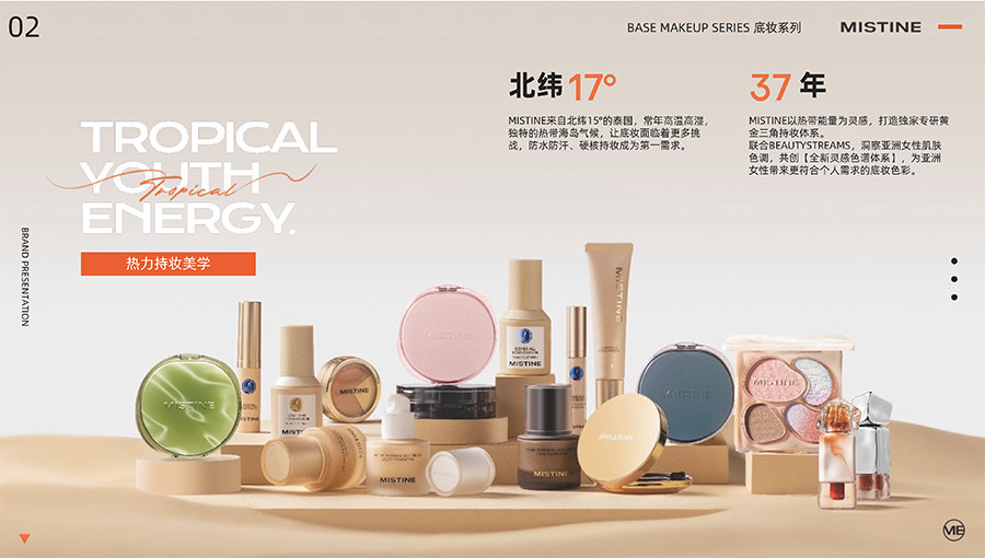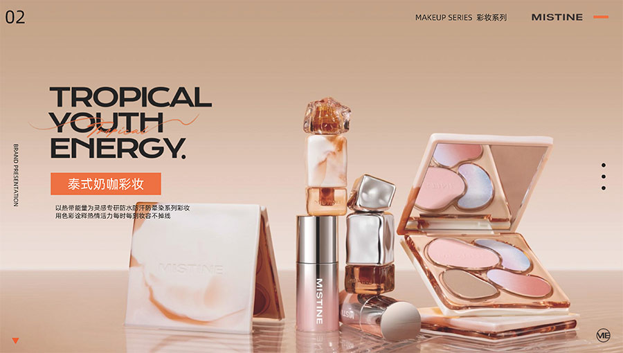MISTINE蜜絲婷1988年始源于泰國(guó),作為知名國(guó)際美妝品牌,擁有37年科研底蘊(yùn),產(chǎn)品種類涵蓋防曬、美妝、護(hù)膚、香水、個(gè)護(hù)五大類,擁有近6000多個(gè)單品暢銷全球20多個(gè)國(guó)家,專注為全球女性提供豐富、安全、高品質(zhì)的美妝產(chǎn)品。自2016年進(jìn)入中國(guó)后,MISTINE蜜絲婷以“熱帶青春能量美妝”為品牌定位,為年輕人打造更懂得他們的全新美妝產(chǎn)品,并傳遞獨(dú)特的健康活力生活方式。