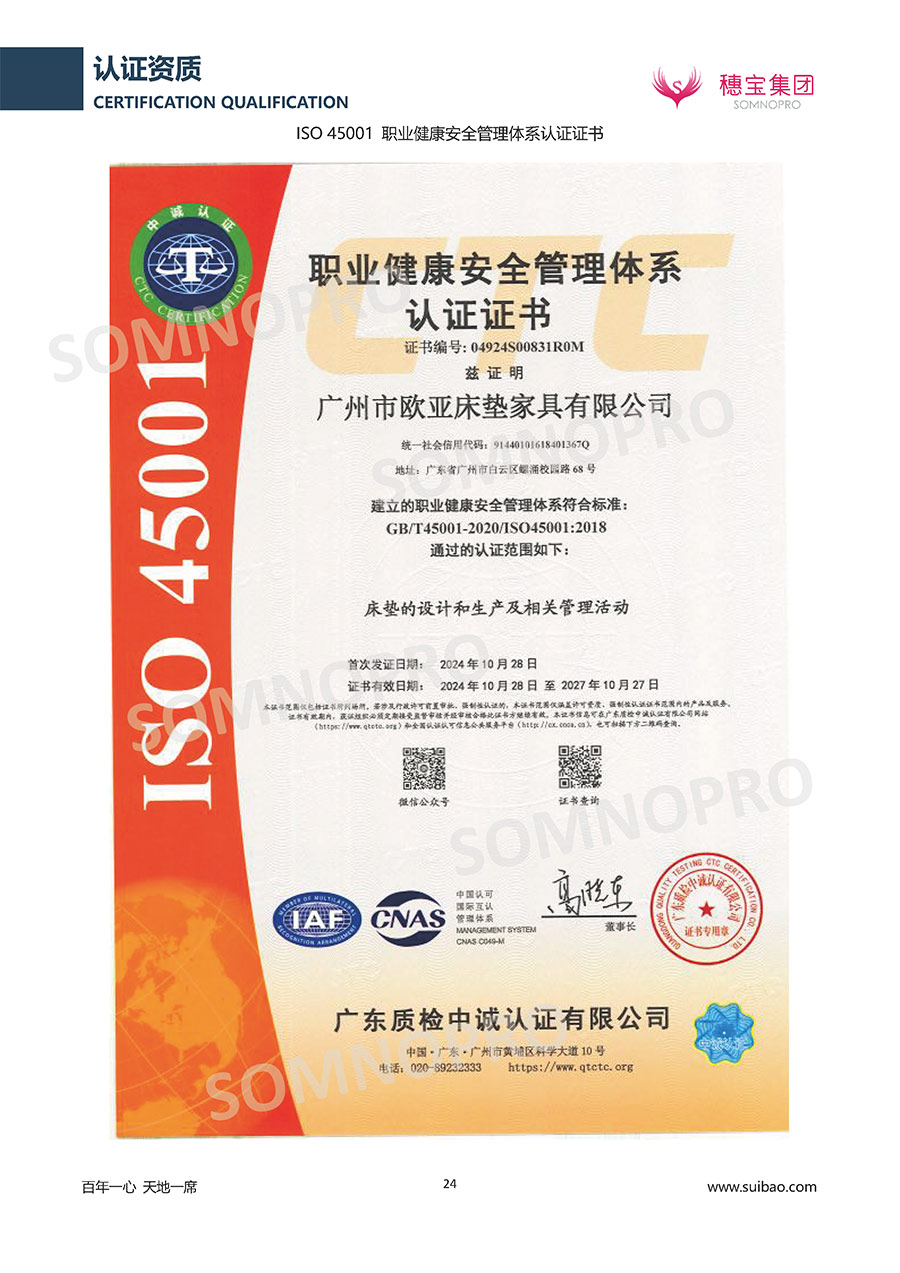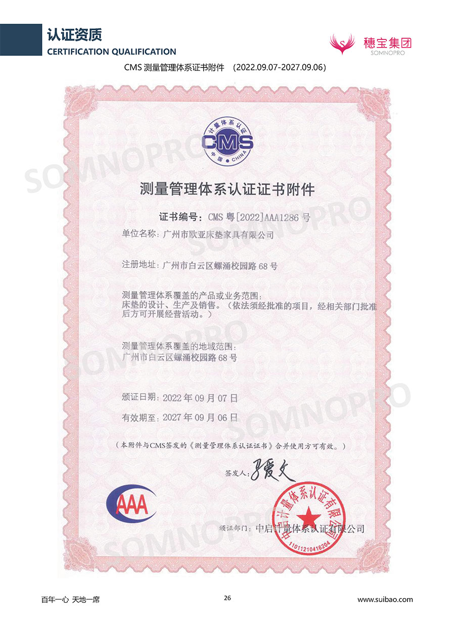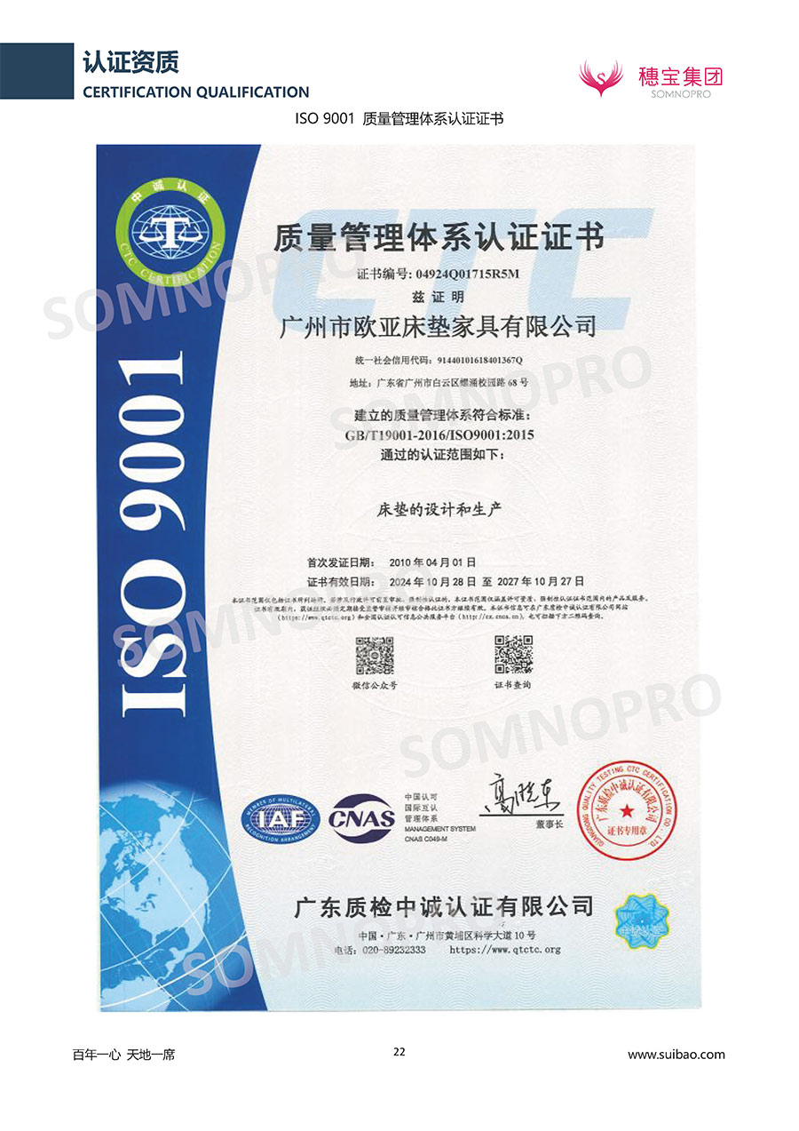 本著高品質(zhì)、高效率、重管理的原則,穗寶已通過(guò)ISO9001質(zhì)量管理體系認(rèn)證證書、ISO14001環(huán)境管理體系認(rèn)證證書、ISO45001職業(yè)健康安全管理體系認(rèn)證證書、中國(guó)環(huán)境標(biāo)志產(chǎn)品認(rèn)證證書、家居綠色環(huán)保領(lǐng)跑品牌、綠色正品家居品牌、企業(yè)標(biāo)準(zhǔn)“綠色領(lǐng)跑者”證書、CMS測(cè)量管理體系證書、CMS測(cè)量管理體系證書附件、廣東省“守信用重合同”企業(yè)、廣州歐亞-納稅信用A級(jí)納稅人(連續(xù)5年:2018-2022)、2024年中國(guó)500最具價(jià)值品牌,品牌價(jià)值高達(dá)302.89億元、廣東高價(jià)值商標(biāo)品牌(穗寶)、廣東省重點(diǎn)商標(biāo)保護(hù)名錄納入證明、廣州市勞動(dòng)關(guān)系和諧企業(yè)AA級(jí)。穗寶自創(chuàng)立以來(lái),不斷致力于新產(chǎn)品的設(shè)計(jì)與研發(fā),多次在國(guó)內(nèi)家具展會(huì)屢獲獎(jiǎng)項(xiàng),產(chǎn)品暢銷國(guó)內(nèi)外,深受客戶一致好評(píng)。