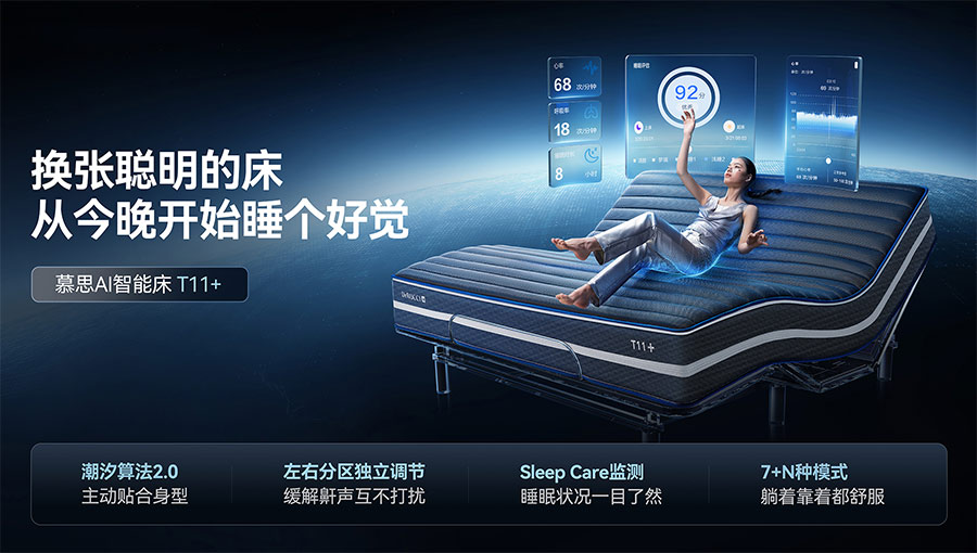 創(chuàng)立之初,慕思就創(chuàng)新性地提出了“量身定制健康睡眠系統(tǒng)”的商業(yè)模式,憑借“量身定制個(gè)人專屬的健康睡眠系統(tǒng)”推動(dòng)傳統(tǒng)寢具行業(yè)的發(fā)展。慕思健康睡眠系統(tǒng)現(xiàn)已更新至第八代T11智能睡眠系統(tǒng),在睡眠垂直領(lǐng)域積累超過百萬數(shù)據(jù),形成一套“潮汐算法”,提供個(gè)性化的睡眠建議和改善方案,幫助用戶改善睡眠質(zhì)量。