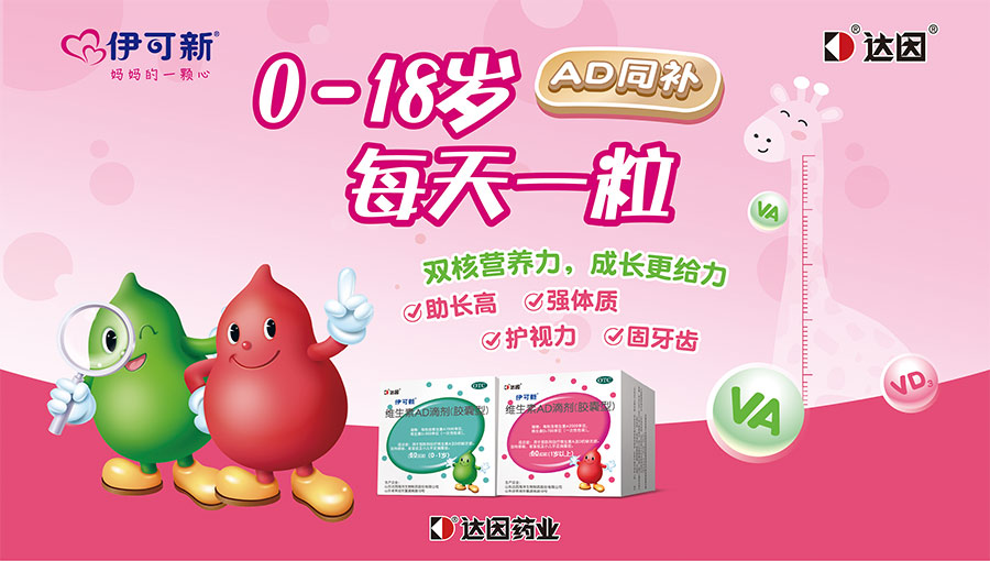 主要產(chǎn)品:伊可新?維生素AD滴劑(膠囊型)、達因?(復方碳酸鈣泡騰顆粒、甘草鋅顆粒、右旋糖酐鐵顆粒、鹽酸托莫西汀口服溶液、西甲硅油乳劑);伊可新?DHA藻油+ARA凝膠糖果、益生菌粉、多種維生素礦物質口服液、鈣鋅口服液、維生素A維生素D軟膠囊、鈣維生素D軟膠囊、鋅軟膠囊