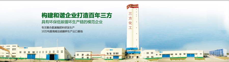山東三方化工集團(tuán)有限公司是一家以生產(chǎn)化肥為主,集化工、科研、房產(chǎn)開發(fā)、金融商貿(mào)及農(nóng)化服務(wù)于一體的大型集團(tuán)化企業(yè)。公司成立于1975年,現(xiàn)有總資產(chǎn)8億元,職工1200余人,占地面積1000余畝。主要產(chǎn)品有復(fù)合肥、硫酸鉀、鹽酸、精細(xì)化工等產(chǎn)品,年綜合生產(chǎn)能力120萬噸,是北方主要的曼海姆法硫酸鉀生產(chǎn)基地,產(chǎn)品遠(yuǎn)銷日本、澳大利亞、埃及、東南亞等海外國家和地區(qū)。