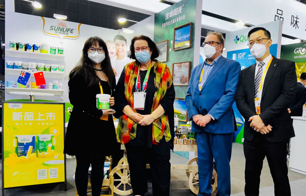 11月6日,新西蘭駐華大使傅恩萊女士、新西蘭貿(mào)發(fā)局大中華區(qū)總裁白安祖先生、新西蘭駐滬總領(lǐng)館總領(lǐng)事黃橋進(jìn)先生,到新西蘭館進(jìn)行視察,并蒞臨生命陽光展位參觀交流,對5年進(jìn)博老朋友的優(yōu)質(zhì)產(chǎn)品表示一如既往的高度認(rèn)可,在看到貿(mào)發(fā)局與中國南方航空聯(lián)合舉辦的“關(guān)愛南航‘新’心相伴”愛心活動(dòng)相冊時(shí),再度贊揚(yáng)了生命陽光的全程參與和公益支持!