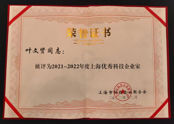 12月8日,上??沦惖滤辜用朗图瘓F有限公司董事長葉文賢被授予“上海市優(yōu)秀科技企業(yè)家”稱號。這是在全國疫情防控新形勢下,對葉文賢同志直面經(jīng)濟大環(huán)境的挑戰(zhàn),堅持科技創(chuàng)新、堅持實業(yè)興企、堅持多品牌運作取得顯著成效的肯定。
