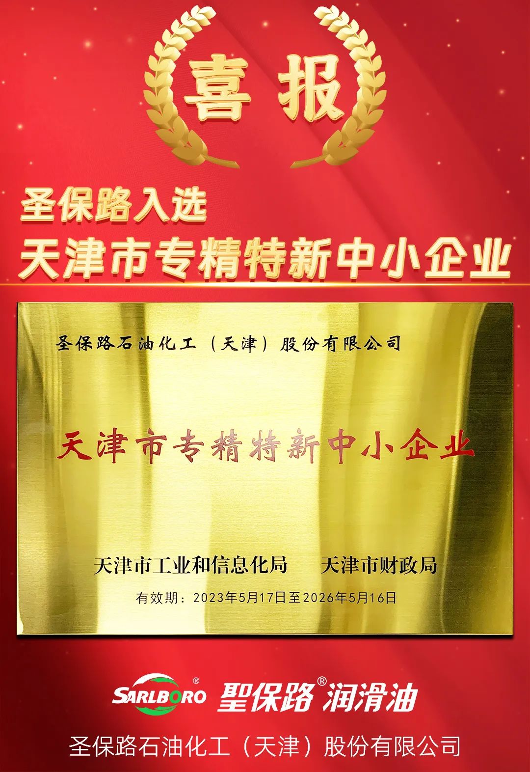 圣保路榮獲天津市“專(zhuān)精特新”企業(yè)稱(chēng)號(hào)