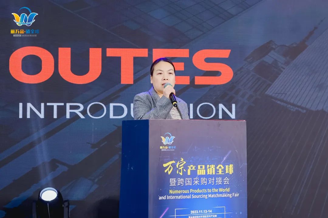 與此同時,中廣電器集團海外營銷中心負責人劉麗萍作為麗水經開區(qū)企業(yè)代表,在對接會開幕式上作相關主題分享。她圍繞集團介紹、主營業(yè)務、產品研發(fā)等多方面內容,向來自世界各地的采購商進行全方位的企業(yè)推介。