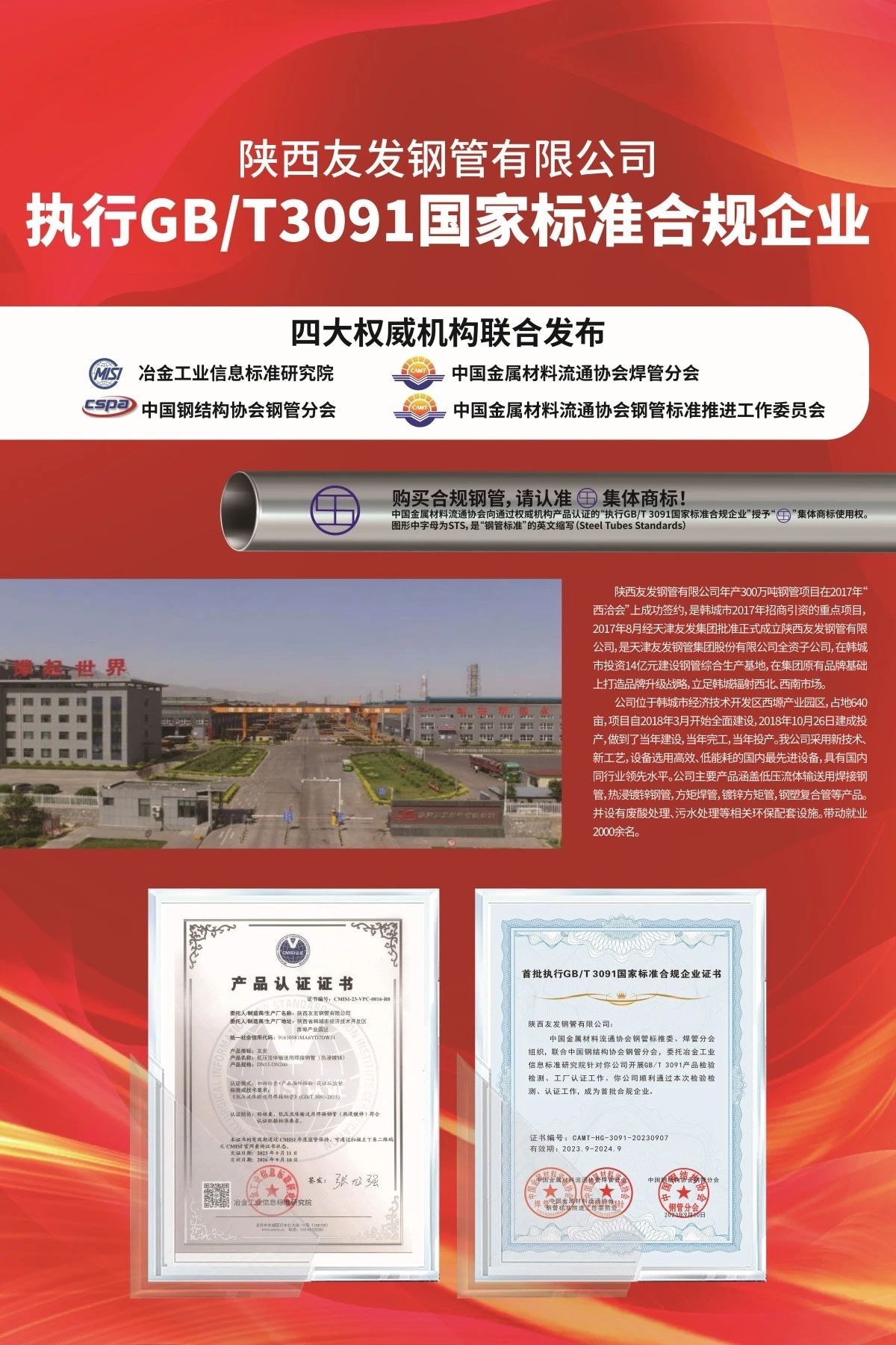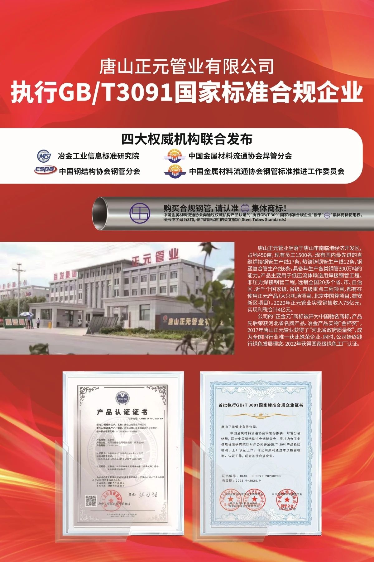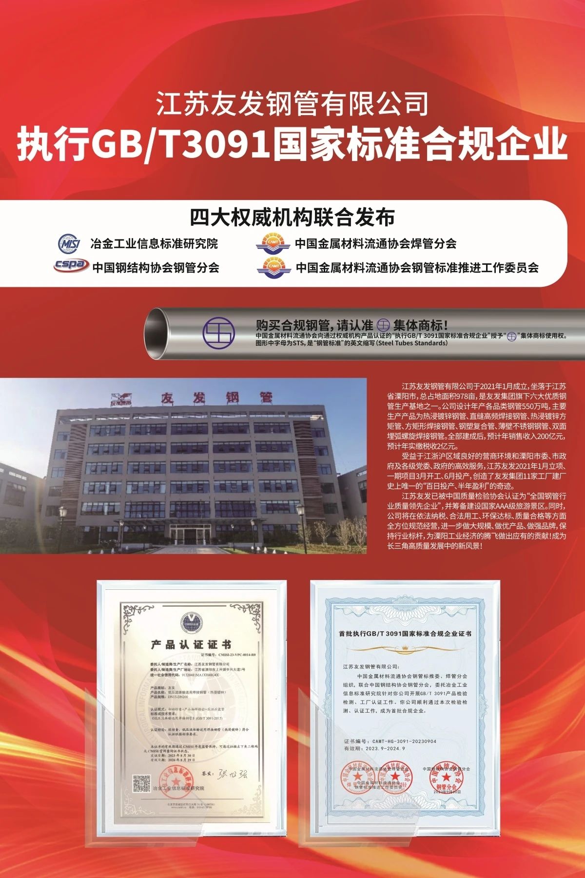 10月16日,由四大權(quán)威機(jī)構(gòu)聯(lián)合發(fā)布的首批入圍《執(zhí)行GB/T 3091國家標(biāo)準(zhǔn)合規(guī)企業(yè)名錄》的14家企業(yè)中,有5家為友發(fā)集團(tuán)旗下企業(yè)。分別為友發(fā)集團(tuán)第一分公司、唐山正元管業(yè)、邯鄲友發(fā)、陜西友發(fā)和江蘇友發(fā),涵蓋友發(fā)集團(tuán)全部鍍鋅圓管產(chǎn)品。