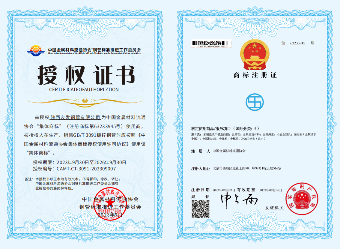 近期,中國金屬材料流通協(xié)會已經(jīng)向執(zhí)行標(biāo)準(zhǔn)合規(guī)企業(yè)授權(quán)使用 “STS(鋼管標(biāo)準(zhǔn))”集體商標(biāo)。友發(fā)集團(tuán)率先垂范,在集團(tuán)5家分子公司相關(guān)產(chǎn)品上集中加裝新的集體商標(biāo),充分發(fā)揮行業(yè)龍頭企業(yè)的“頭雁效應(yīng)”,引領(lǐng)行業(yè)規(guī)范化、健康化高質(zhì)量發(fā)展。