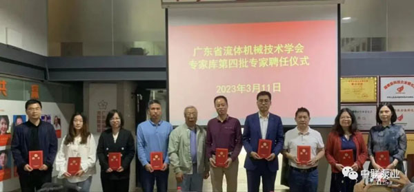 2023年3月11日,中聯(lián)泵業(yè)董事長、湖南省五金機電商會會長潘世群先生被聘任為廣東省流體機械技術(shù)學會專家?guī)斓谒呐夹g(shù)專家。