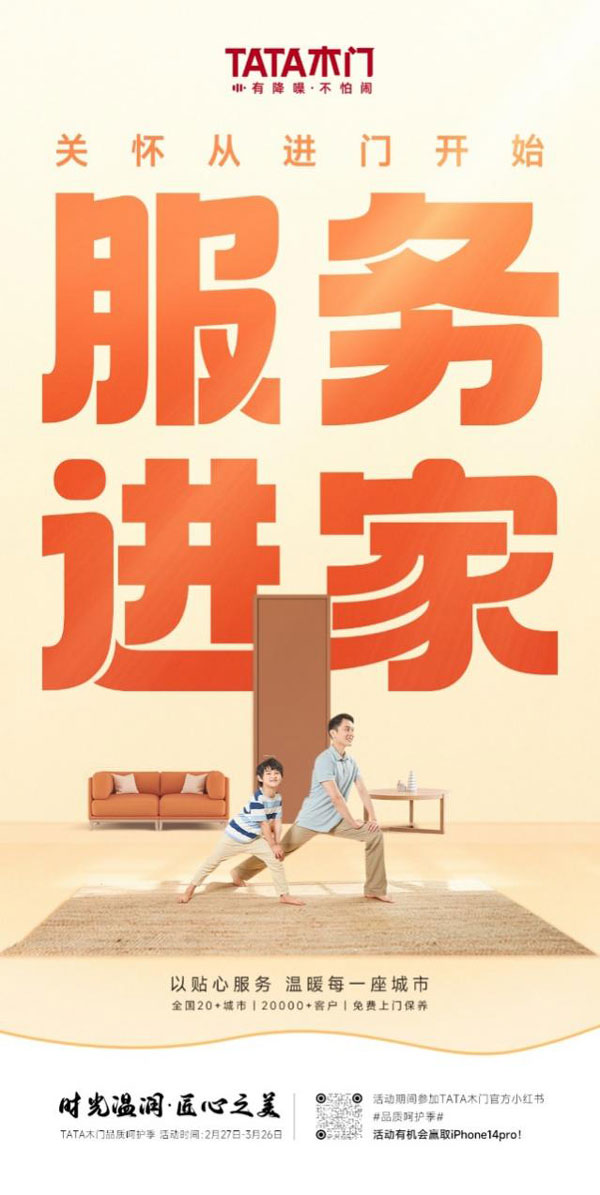 與此同時(shí),TATA木門(mén)延續(xù)了往年的服務(wù)月活動(dòng),特別為全國(guó)20多座城市,20000多位用戶提供免費(fèi)上門(mén)保養(yǎng)服務(wù),用實(shí)際行動(dòng)傳遞著品牌的溫度。除此之外,為回饋新老用戶,TATA木門(mén)推出木門(mén)放心購(gòu)活動(dòng),以超值的價(jià)格全新讓利于消費(fèi)者,打通全平臺(tái)銷(xiāo)售通道,讓消費(fèi)者能夠以最值的價(jià)格獲得最優(yōu)質(zhì)的品質(zhì)和服務(wù)。