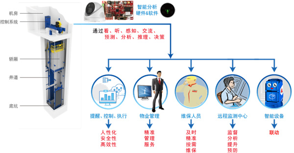 愛登堡人工智能綠色曳引驅(qū)動(dòng)乘客電梯通過搭載先進(jìn)傳感器、控制器、執(zhí)行器等裝置,結(jié)合信息通信、互聯(lián)網(wǎng)、大數(shù)據(jù)、云計(jì)算、傳感檢測(cè)等新技術(shù),具備與人類智能(視覺、聽覺、感知、決策、交互、語言、執(zhí)行)相關(guān)的功能。