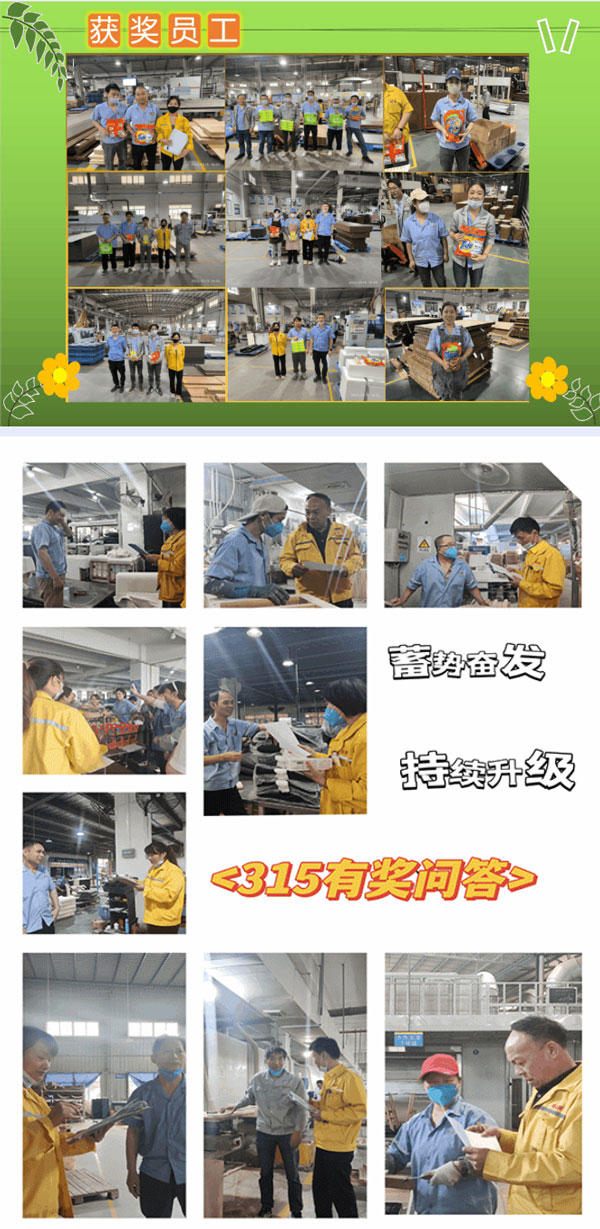 “3.15”活動圓滿落下帷幕,對于廣東華盛家具集團而言,自成立以來始終將“創(chuàng)鑄名牌,服務社會”企業(yè)使命深植于心,外化于行,堅守初心“用心創(chuàng)造品質,匠心鑄造品牌,為客戶乃至社會提供更優(yōu)質產(chǎn)品和體驗”堅持質在每一天,365天每天都是“3.15”,此次活動的成功舉辦標志著2023年廣東華盛家具集團宣傳系列活動全面展開,全員投身參與企業(yè)“同行業(yè)、同類型、最高檔次”品質建設,形成產(chǎn)品質量“零缺陷”, 人人創(chuàng)造質量,人人享受質量新局面,推動企業(yè)邁入高質量跨越發(fā)展新時代,再創(chuàng)佳績,2023年蓄勢奮發(fā),持續(xù)升級。