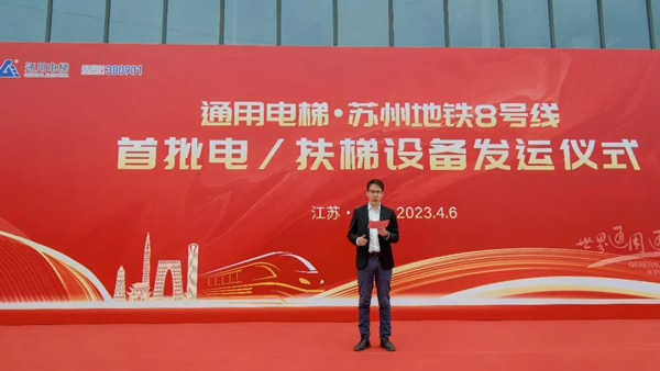通用電梯蘇州地鐵8號(hào)線項(xiàng)目各執(zhí)行部門均到場參加了發(fā)運(yùn)儀式,執(zhí)行總裁徐斌先生主持了發(fā)運(yùn)儀式并做致辭。