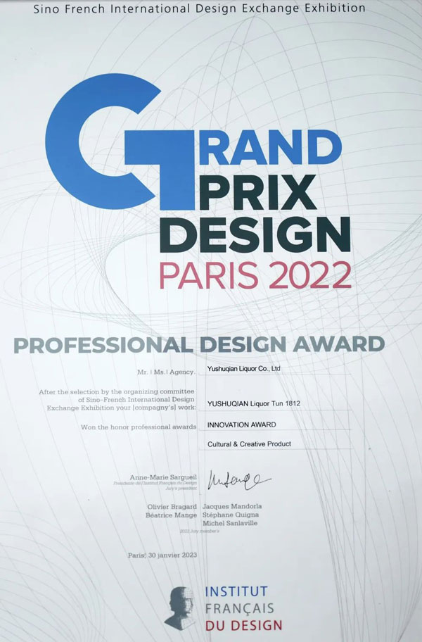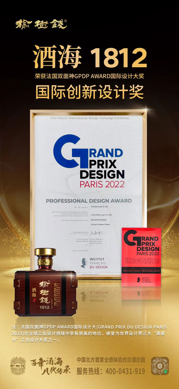 《榆樹錢酒海1812》,成功通過最終評(píng)審榮獲法國(guó)雙面神GPDP AWARD國(guó)際設(shè)計(jì)大獎(jiǎng)-國(guó)際創(chuàng)新設(shè)計(jì)獎(jiǎng)!
