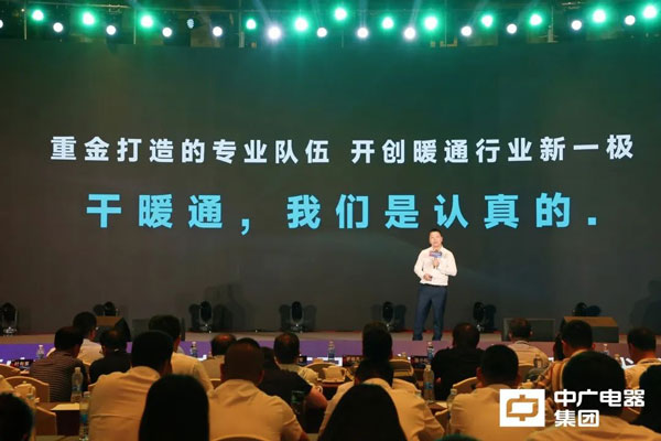 會上,中廣電器集團(tuán)董事長朱建軍作《暖通戰(zhàn)略發(fā)布》主題報告,他首先肯定了集團(tuán)上半年各項經(jīng)營工作取得的成效,并為接下來中廣開拓暖通藍(lán)圖明晰路線、指引方向。