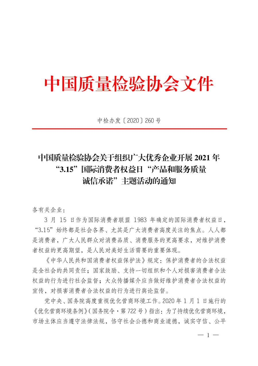 中國(guó)質(zhì)量檢驗(yàn)協(xié)會(huì)關(guān)于組織廣大優(yōu)秀企業(yè)開展2021年