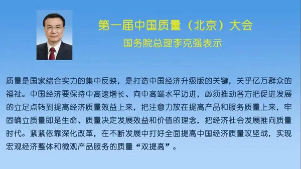 首次舉辦中國(guó)質(zhì)量(北京)大會(huì)。從2014年開始,我國(guó)持續(xù)以國(guó)家名義召開質(zhì)量大會(huì),開創(chuàng)了中國(guó)質(zhì)量發(fā)展的新歷史。