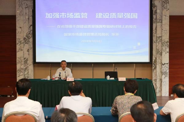 在我國第40個(gè)全國“質(zhì)量月”到來之際,9月1日,由中共中央組織部、中國浦東干部學(xué)院和國家市場(chǎng)監(jiān)督管理總局共同舉辦的“省部級(jí)干部建設(shè)質(zhì)量強(qiáng)國專題研討班”在滬開班,這也是繼兩年前在京舉辦首個(gè)省部級(jí)干部“全面實(shí)施質(zhì)量強(qiáng)國戰(zhàn)略專題研討班”之后的第二個(gè)省部級(jí)質(zhì)量強(qiáng)國戰(zhàn)略專題研討班。市場(chǎng)監(jiān)管總局局長(zhǎng)、黨組副書記張茅作為首位授課人,在專題研討班上以“加強(qiáng)市場(chǎng)監(jiān)管 建設(shè)質(zhì)量強(qiáng)國”為題做了專題講座。