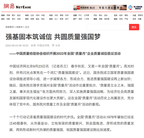 網(wǎng)易網(wǎng):強基固本筑誠信 共圓質量強國夢——中國質量檢驗協(xié)會組織開展2022年全國“質量月”企業(yè)質量誠信倡議活動
