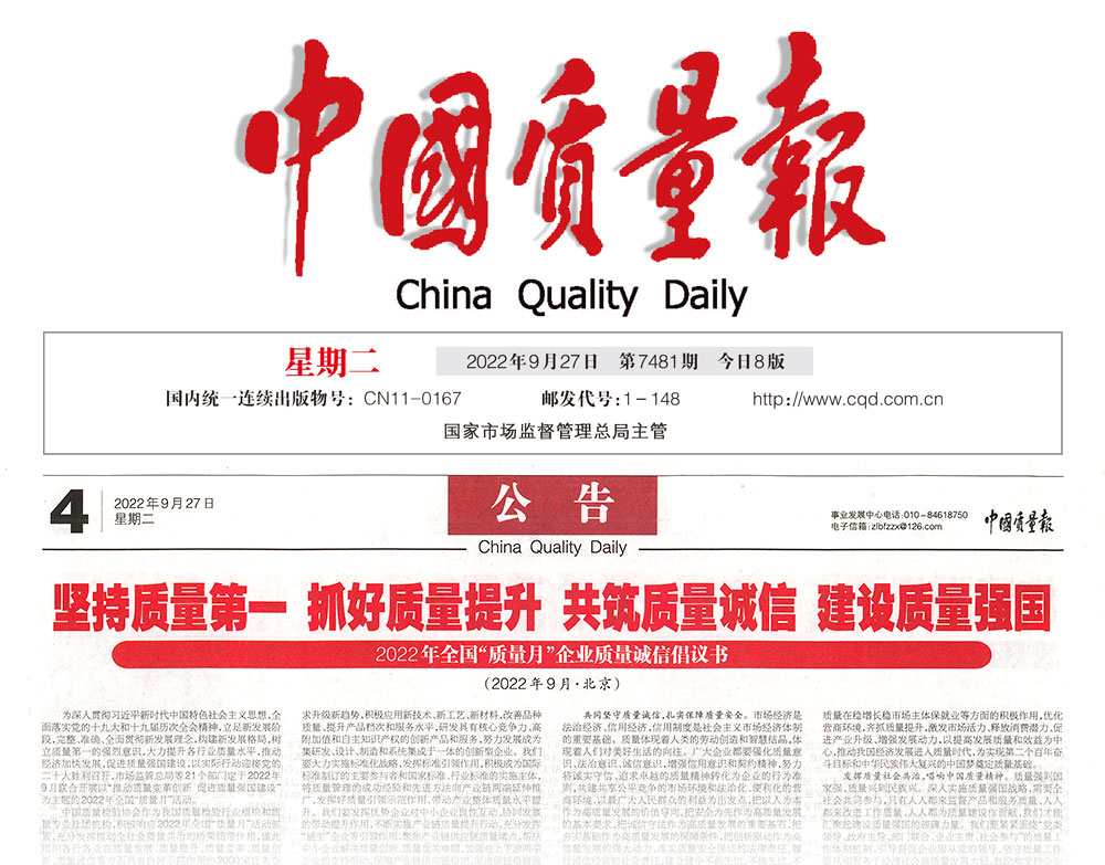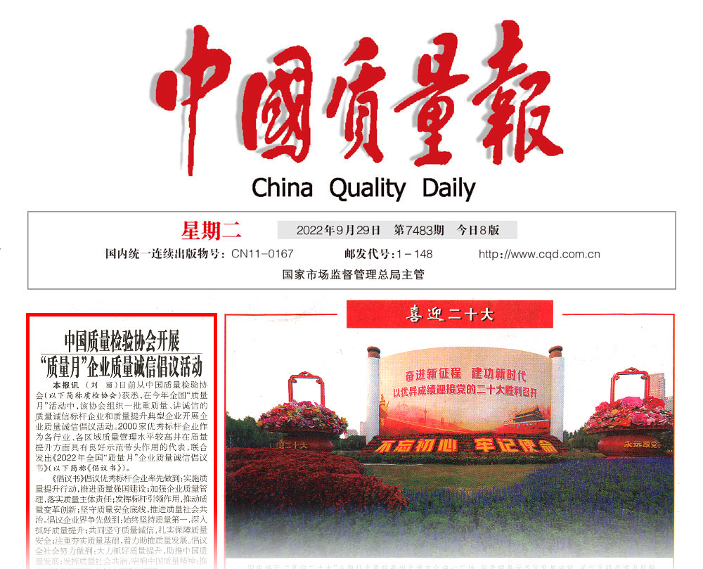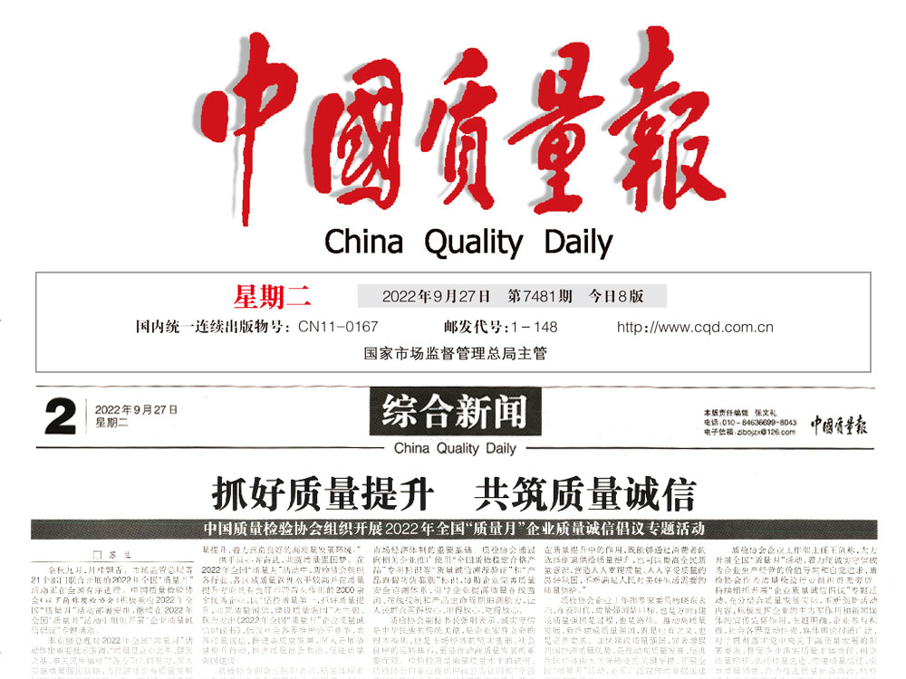 中國質量報:抓好質量提升 共筑質量誠信