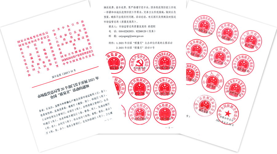 為深入貫徹習(xí)近平新時(shí)代中國特色社會主義思想,全面落實(shí)黨的十九大和十九屆二中、三中、四中、五中全會精神,立足新發(fā)展階段,貫徹新發(fā)展理念,構(gòu)建新發(fā)展格局,樹立質(zhì)量第一的強(qiáng)烈意識,不斷提升質(zhì)量總體水平,大力推進(jìn)質(zhì)量強(qiáng)國建設(shè),市場監(jiān)管總局等20個部門定于2021年9月聯(lián)合開展全國“質(zhì)量月”活動。