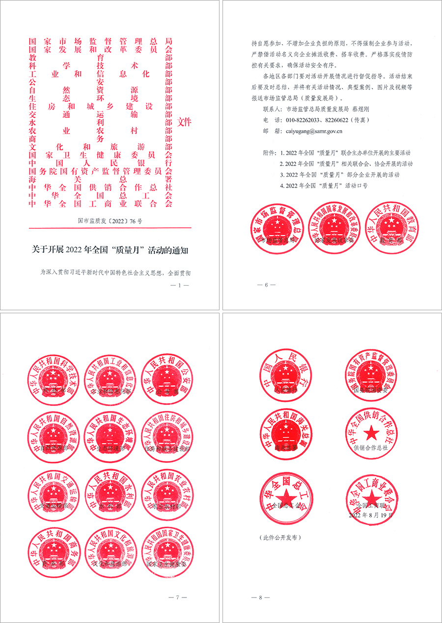 全國“質(zhì)量月”活動(dòng)是我國長期開展的一項(xiàng)重大質(zhì)量活動(dòng),是在政府主管部門的倡導(dǎo)和部署下,聯(lián)合國家相關(guān)部委(部門)和單位并發(fā)動(dòng)廣大企業(yè)與全社會(huì)積極參與,一年一度以多種形式于每年9月在全國范圍內(nèi)組織開展跨時(shí)一個(gè)月并旨在提高全民質(zhì)量意識(shí)和質(zhì)量水平的國家級(jí)大型質(zhì)量專題活動(dòng),全力營造人人關(guān)心質(zhì)量、重視質(zhì)量、創(chuàng)造質(zhì)量、享受質(zhì)量的良好社會(huì)氛圍,推進(jìn)建設(shè)質(zhì)量強(qiáng)國。